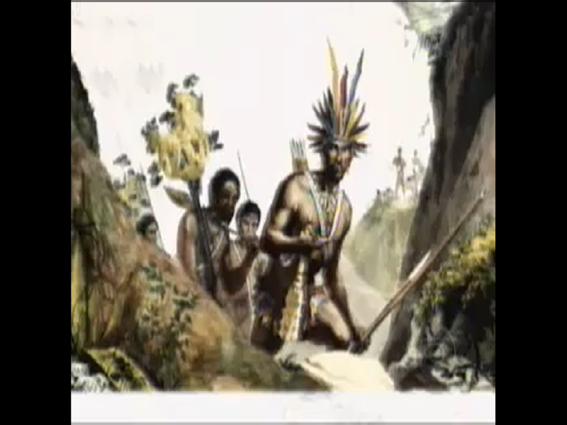 festas. O carrasco colocava um manto de penas e matava a vítima com um golpe de