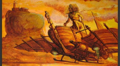 "Rama Airways número do vôo sete para Bali, Ilha de Páscoa, Nazca, e Atlantis está pronto para o embarque Passageiros por favor prossiga para o número porta ...") No Tibete, há pequena distância, e fala da "carruagem de fogo" assim: " Bhima voou avante em seu carro, resplandecente como o sol e alto como um trovão ... O carro voador brilhava como uma chama no céu da noite de verão ... é varrida por um cometa ... como Era como se dois sóis foram brilhando. Em seguida, o carro se levantou e todo o céu se iluminou. "